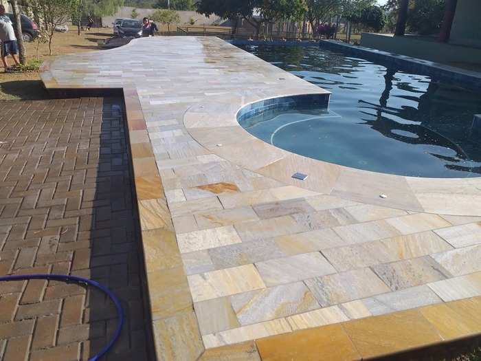 Sim, as pedras como São Tomé são antiderrapantes e atérmicas, o que as torna perfeitas para áreas ao redor de piscinas.